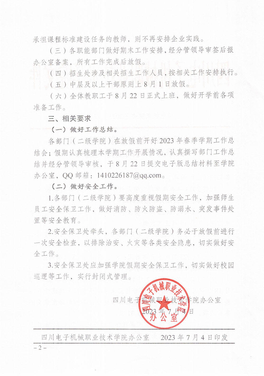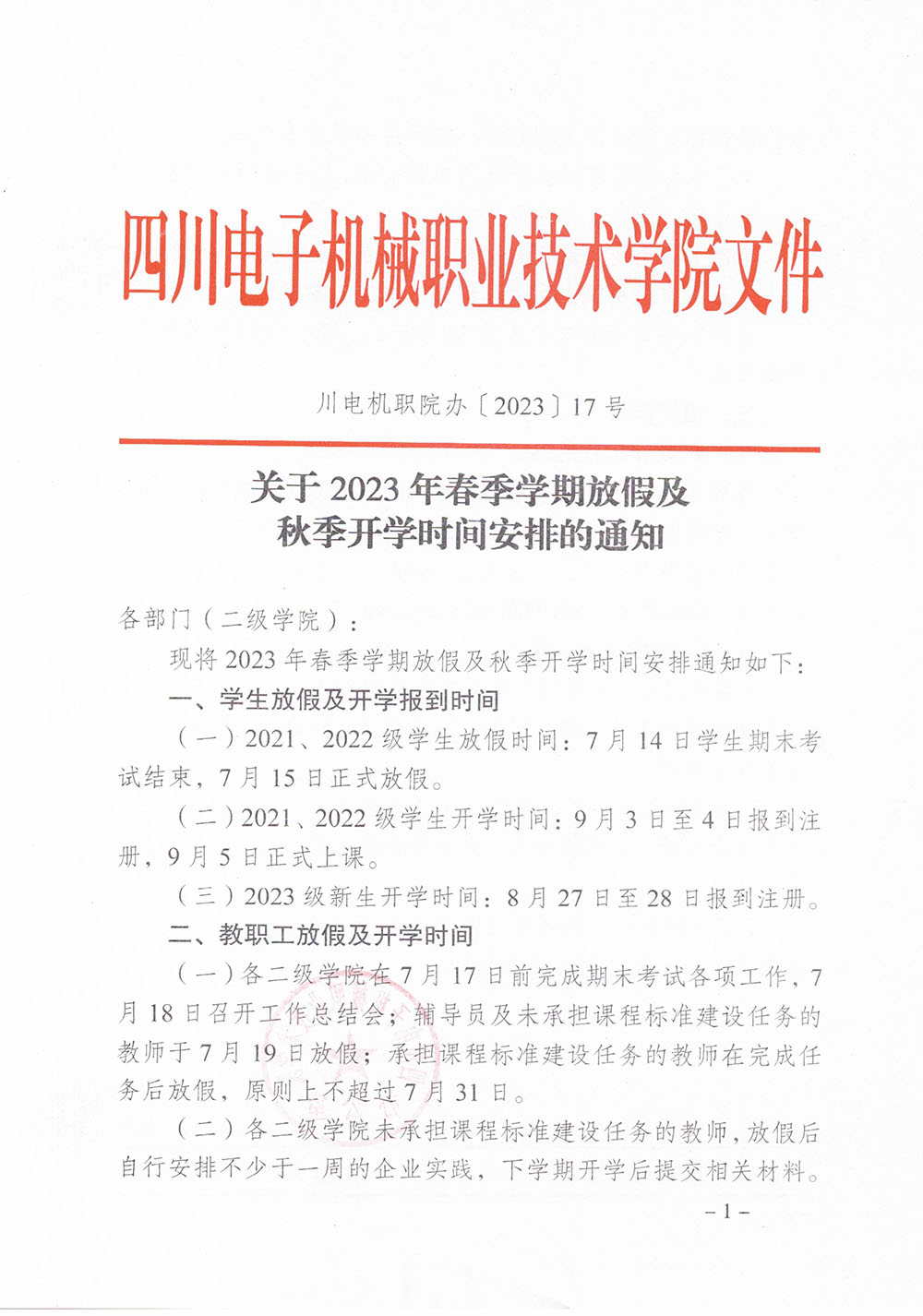关于2023年春季学期放假及秋季开学时间安排的通知