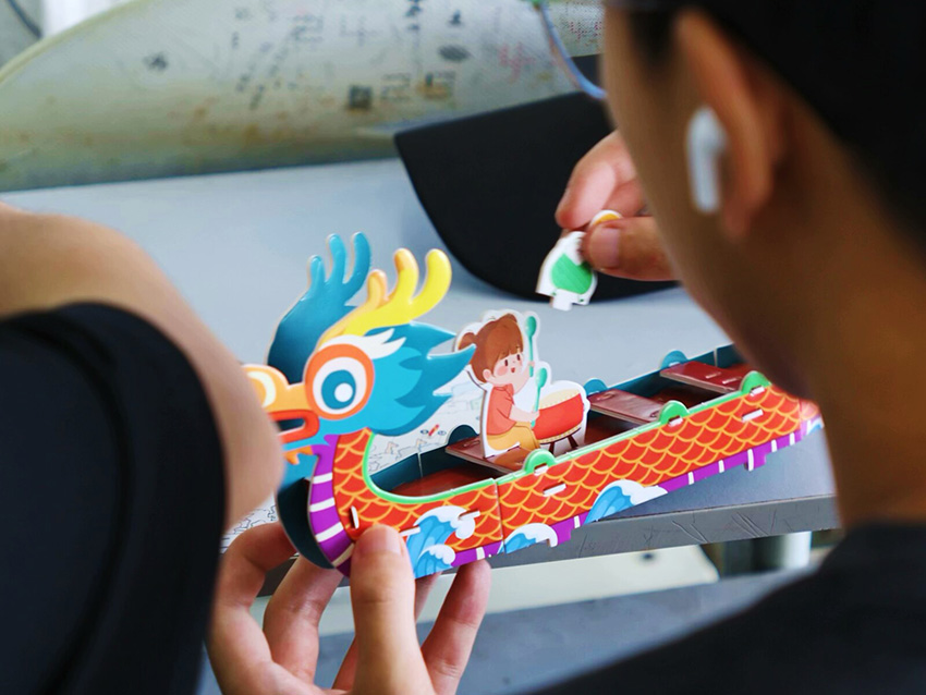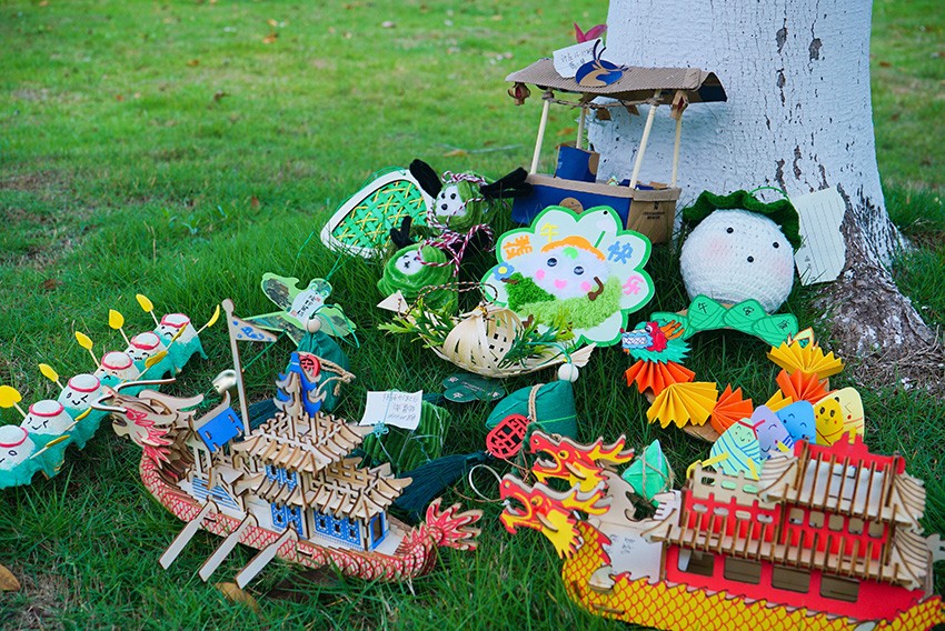 当环保理念邂逅端午习俗,创意火花激情迸发。部分班级以“绿色端午”为号召,鼓励同学们利用环保材料进行主题手工创作。灵巧的竹编小船寄托着对先贤的追思,精心组装的纸板龙舟仿佛即将破浪前行,五彩斑斓的毛线粽子更是栩栩如生。这些匠心独具的作品,不仅是艺术创造力的展现,更是对端午节深厚文化内涵的生动诠释,让环保意识与传统文化在指尖完美融合。